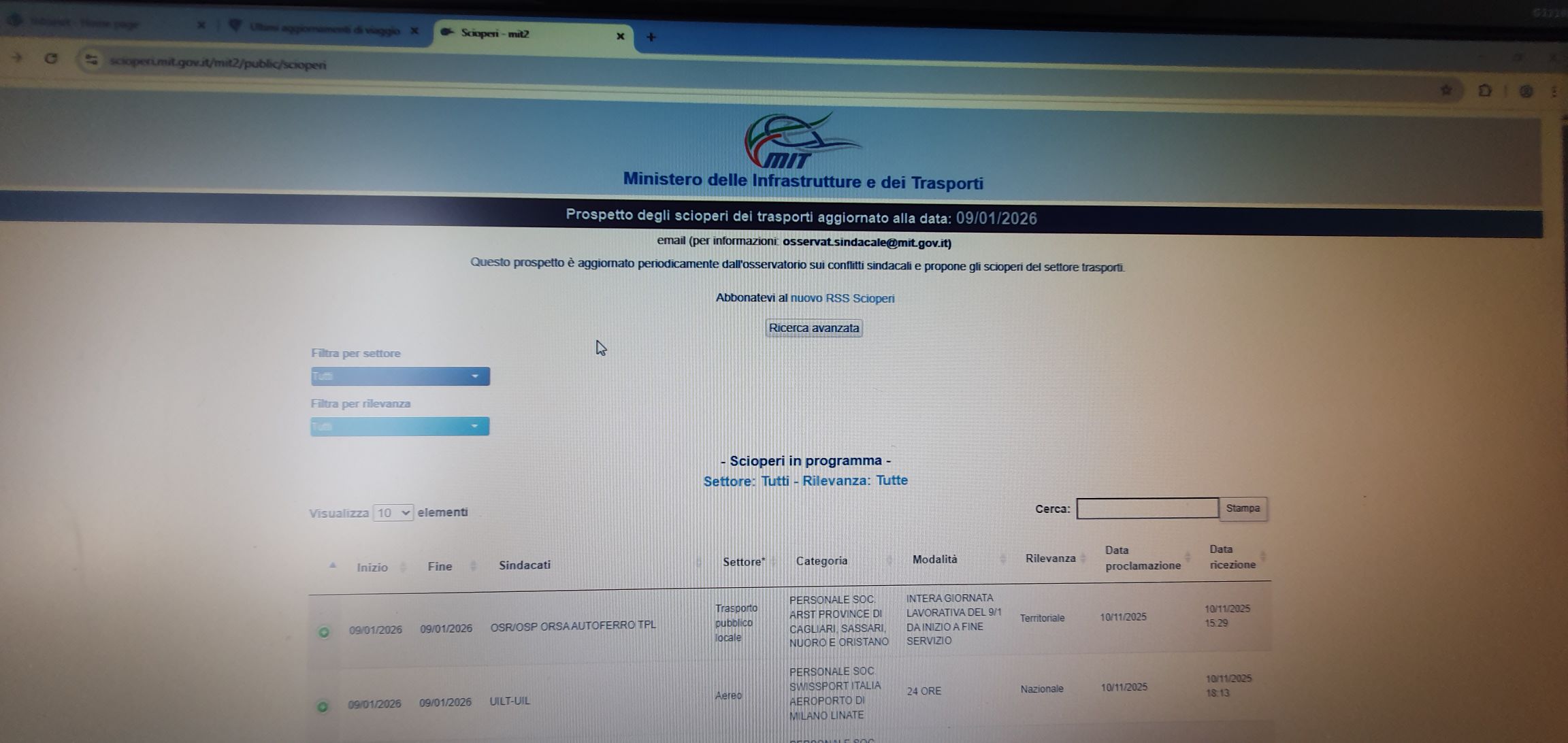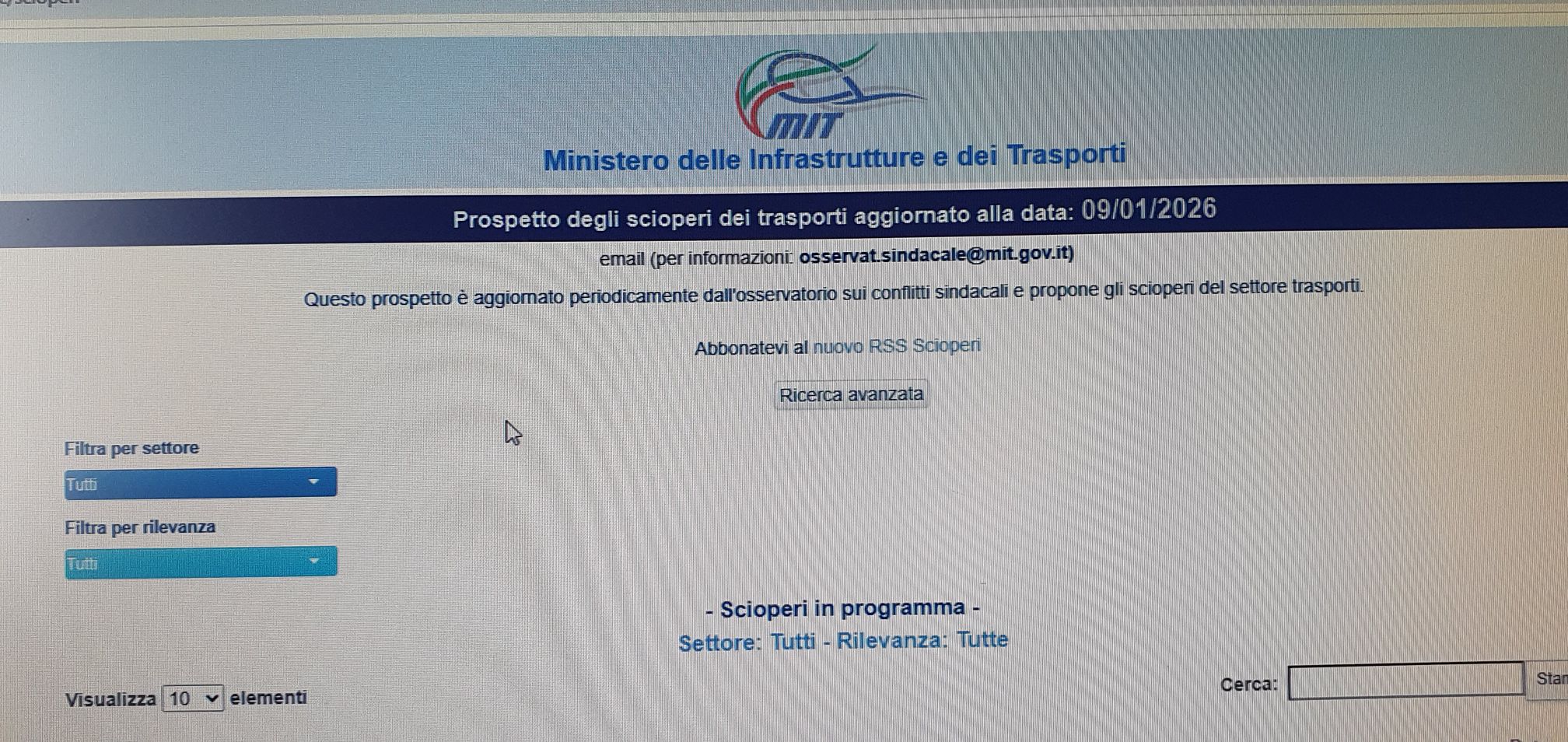 Nel sito ufficiale del Ministero dei Trasporti ed Infrastrutture, alla email ufficiale: scioperi.mit.gov.it, sito che viene aggiornato costantemente.