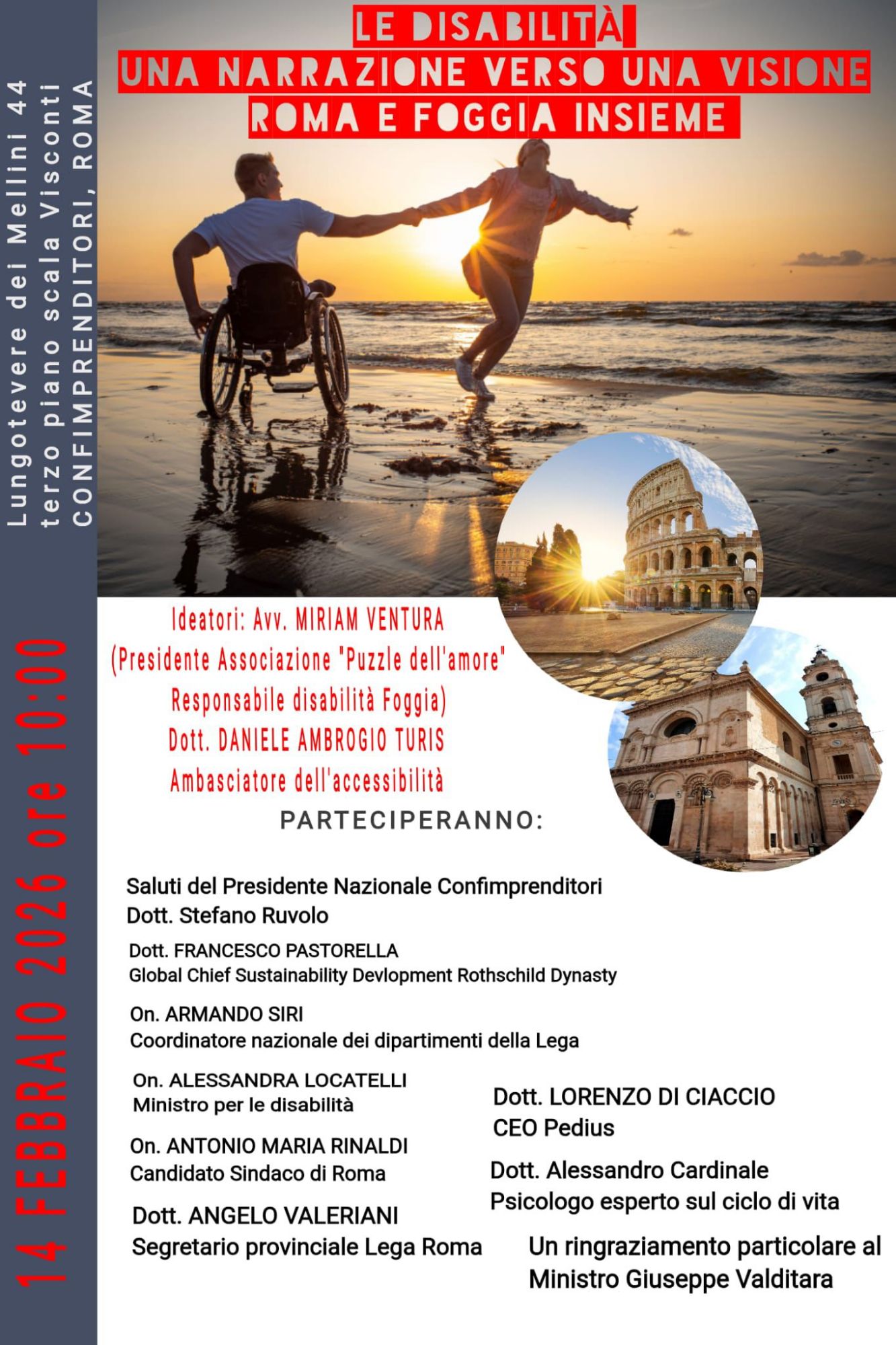 Si terrà oggi, sabato 14 Febbraio, a Roma, dalle ore 10, il Convegno dal tema “Le disabilità – una narrazione verso una visione – Roma e Foggia insieme”, nella sede di Cofimprenditori – Lungotevere dei Mellini 44.