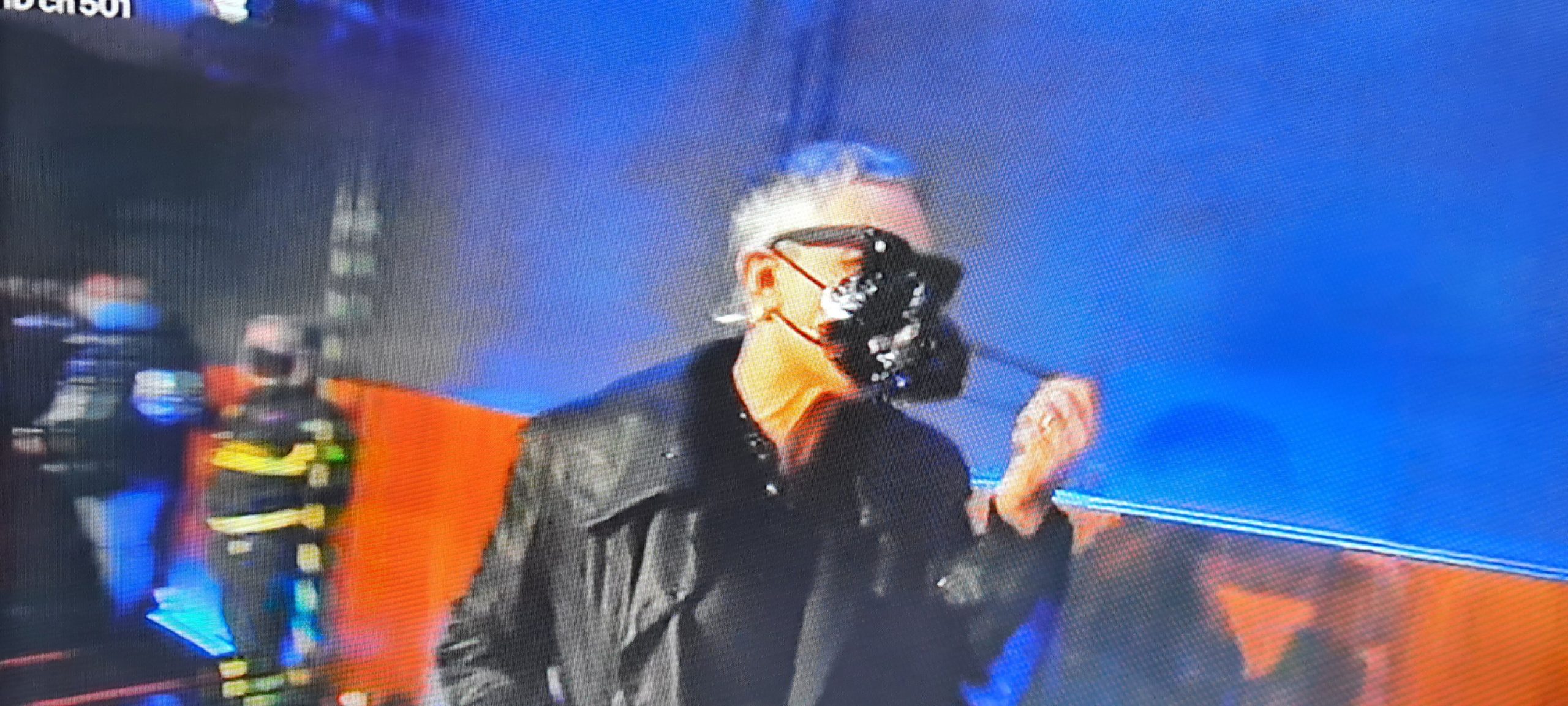 Entra dall’ esterno dell’ Ariston con una mascherina nera, attraversa il Teatro misurando la febbre a tutti ed al direttore di Rai Uno, con temperatura a 35°
