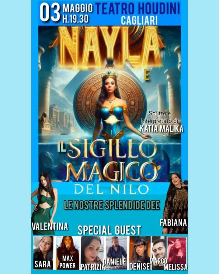 OGGI A CAGLIARI AL TEATRO HOUDINI, DANZA, MUSICA E CANTO CON LO SPETTACOLO “NAYALA – IL SIGILLO MAGICO DEL NILO” – ORE 19.30.