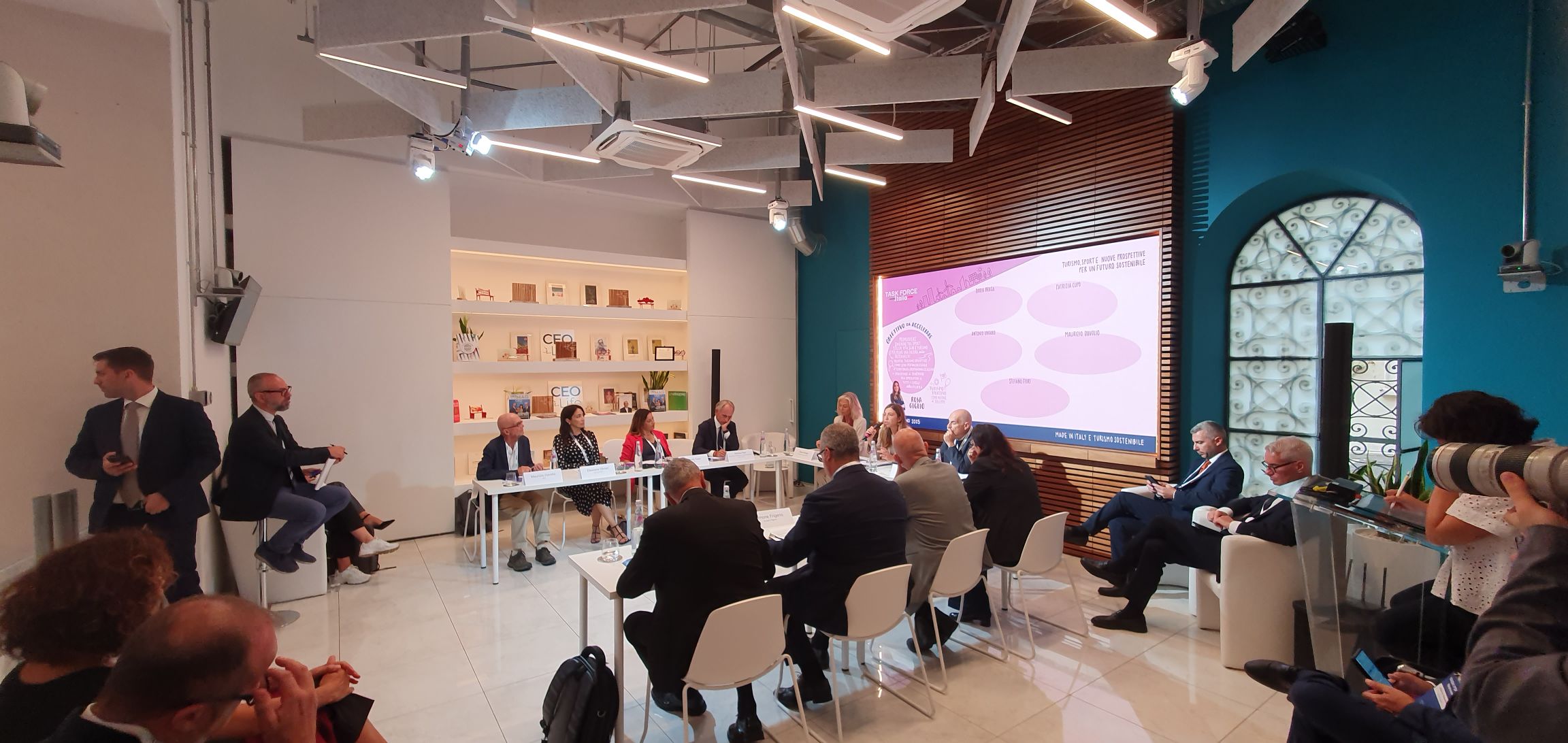 Ad aprire i lavori è stato il Sen. Gianmarco Centinaio, Vicepresidente del Senato. Sono successivamente intervenuti l’on. Ilaria Cavo, Vicepresidente Commissione Attività Produttive, Commercio e Turismo alla Camera dei Deputati, Alessandra Priante Presidente ENIT Spa, Maurizio Davolio Presidente Associazione Italiana Turismo Responsabile, Rosa Lotito Presidente Associazione Nazionale Ospitalità Italiana Made in Italy (ANOI), Marina Lalli Presidente Federturismo Confindustria, Giuseppe Roscioli Vicepresidente Vicario Federalberghi, Giuseppe De Martino Presidente Tourism and Leisure Industry Unindustria, Massimo Caputi Presidente Associazione Marchi Storici d’Italia.