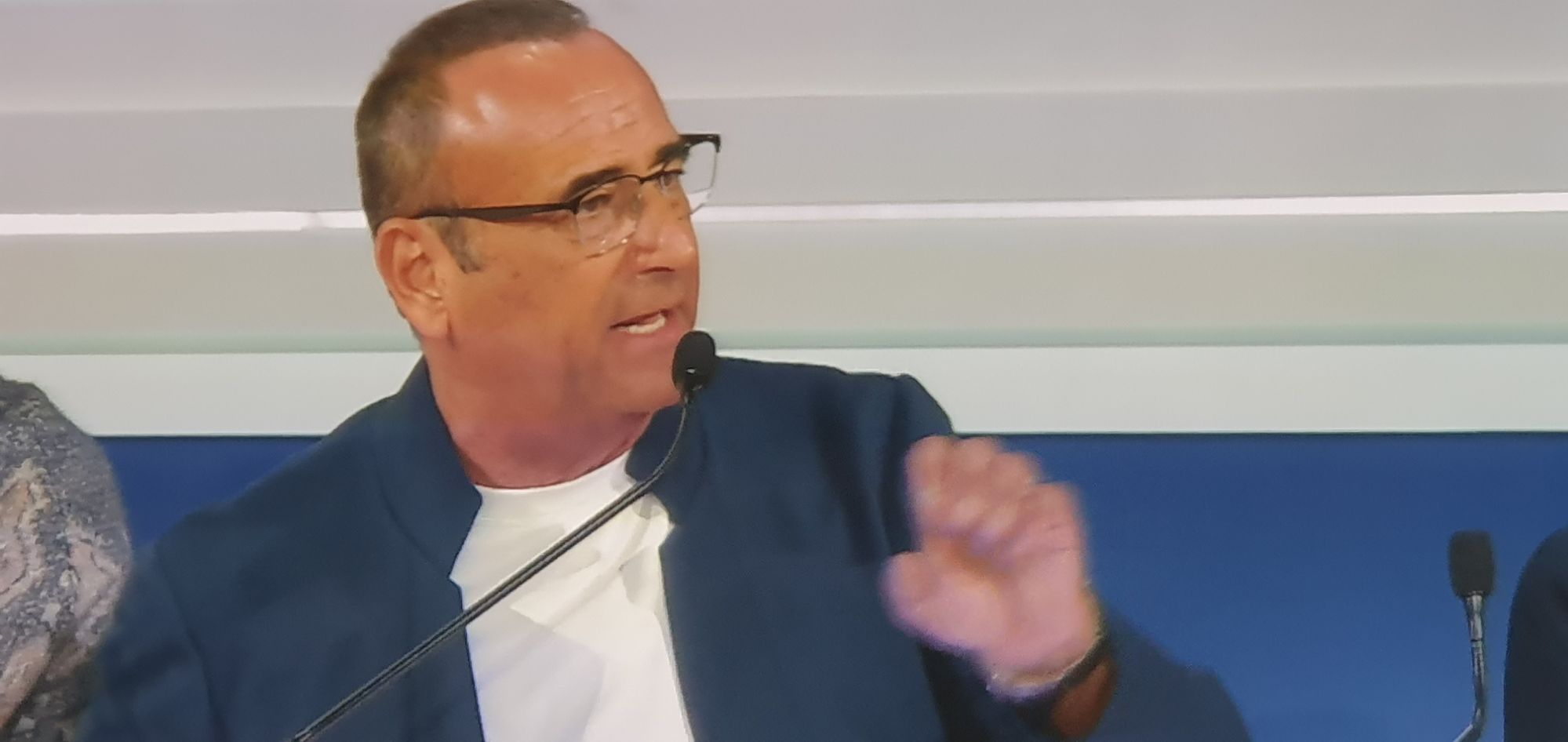 SANREMO 2025. CONFERENZA STAMPA QUOTIDIANA DELL’ ORGANIZZAZIONE RAI-COMUNE 11.02.2025. CARLO CONTI SI COMMUOVE PER LA PRIMA VOLTA NELLA SUA VITA ARTISTICA.