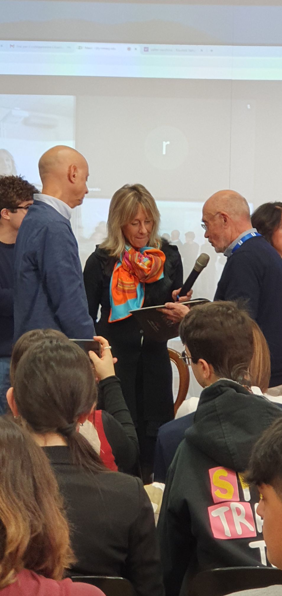 Vacchino ha poi consegnato alla responsabile del Liceo l’ ultimo “Quaderno dell’ Ariston” con Carlo Conti.